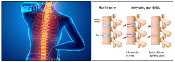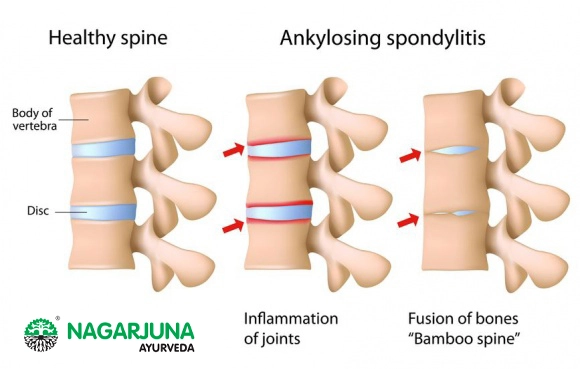 This is a type of inflammatory arthritis that affects the spine. Pain, stiffness, reduction in movement and rigidity of the spine are the major symptoms. Pain usually starts at the low back with stiffness, later affecting the whole spine. Patient may also feel pain in the shoulders, hips, buttocks, heels and ribs. In chronic stage, the small joints in the spine will fuse together and reach a stage like bamboo spine. Morning stiffness of the whole back is very common. Due to the hardening of the ligaments and fusing of the vertebrae, person will slouch forward. Men are affected more than women and the specific reason is unknown. Genetic factor plays a key role. Those who have a gene called HLAB27 is at a greater risk of developing this disease.