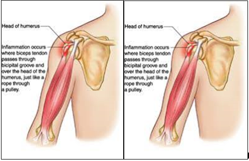 This is a condition where the tendon of the muscle on the upper arm and the tendon of the muscle on the shoulder blade area become inflamed either due to over activity, wrong movements or because of the repeated stress. The pain is usually felt in the front of the shoulder joint, which may sometimes radiate down to the upper arm and above the shoulder. Pain usually aggravates due to activities done with arms raising overhead and at night.
