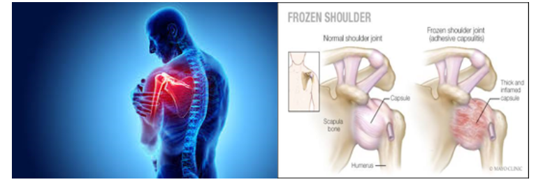 Frozen Shoulder is one of the most common reason for shoulder pain. The pain may worsen at night and on strain on the shoulder joint. Along with pain, the patient also feels stiffness and limitation in movement. Later the joint becomes frozen with no possible movements. This is quite common in diabetic patients and the patients with thyroid dysfunction. The inflammation in the shoulder, hardening of the soft tissues in the capsule along with reduction in the synovial fluid are the reasons for the shoulder to end up frozen.