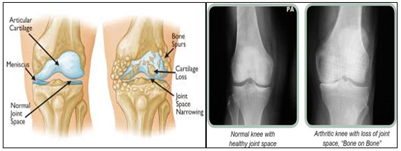 Osteoarthritis is the most common type of arthritis affecting the knee. It starts as wear and tear of the soft cartilage in and around the knee. The degenerative changes can, if not managed, continue and end up in pain and restricted movements of the joint. It can affect people of all ages but mostly affects after the age of 50. The cushion like cartilage, present between the bones,wears out partially or completely resulting in this condition.