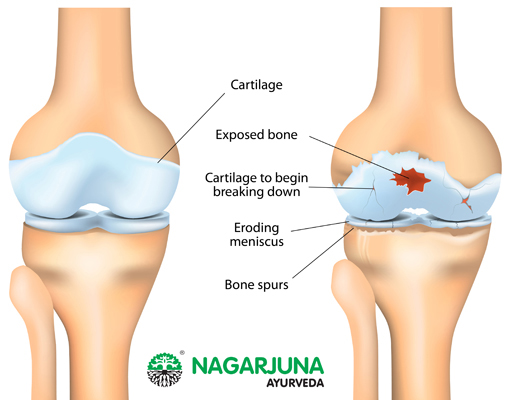 Ayurveda consider this as Sandhigatha Vata, where Vata gets aggravated due to mechanical stress and strain in the joint. Due to this aggravation, the corresponding dry and rough properties of Vata also increase, in the soft hydrated structures like cartilage, situated within the joint. Continued mechanical stress on the dehydrated soft structures will lead to progressive degeneration.